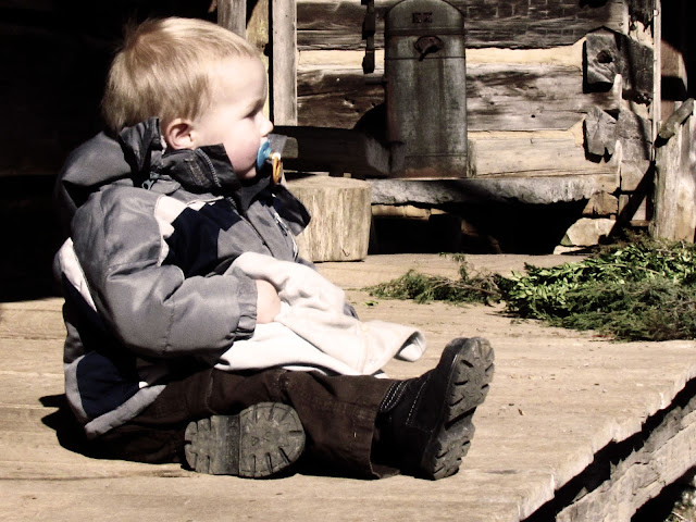 We have this great place right up the road from us that has some of the best homecooked southern style food around!  In fact, we have only been to the Museum of Appalachia for food, their gift shop, and TN Fall Homecoming.  Saturday we decided to tour the actual museum.........and eat!!!!!!  We enjoyed ourselves, it was good for the boys to get outside and explore, and the food was fantastic as always!  It was definitely chilly, but we were bundled.  The fire in their restaurant after the tour was so nice!  The boys haven't had much outdoor time recently, due to chilliness and even a few snow flurries on Friday!!!!!